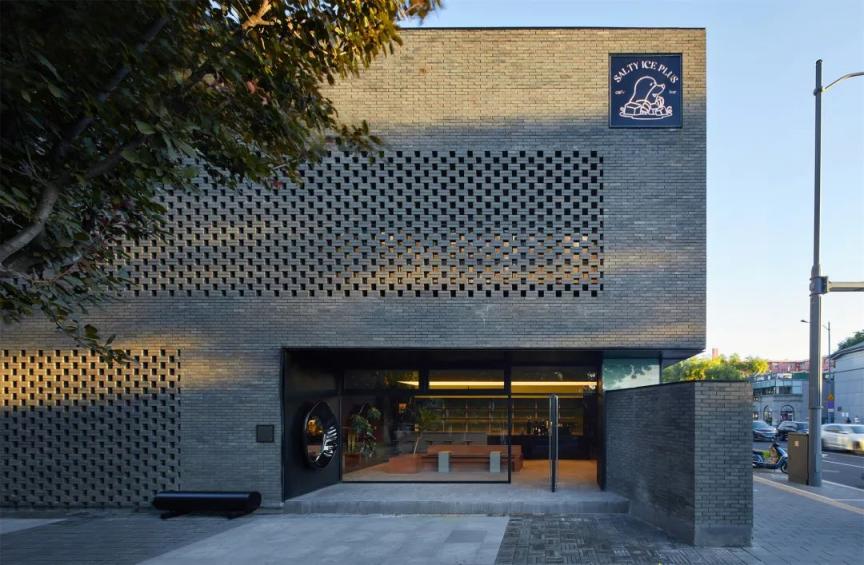 灰色砖瓦镂空的外墙